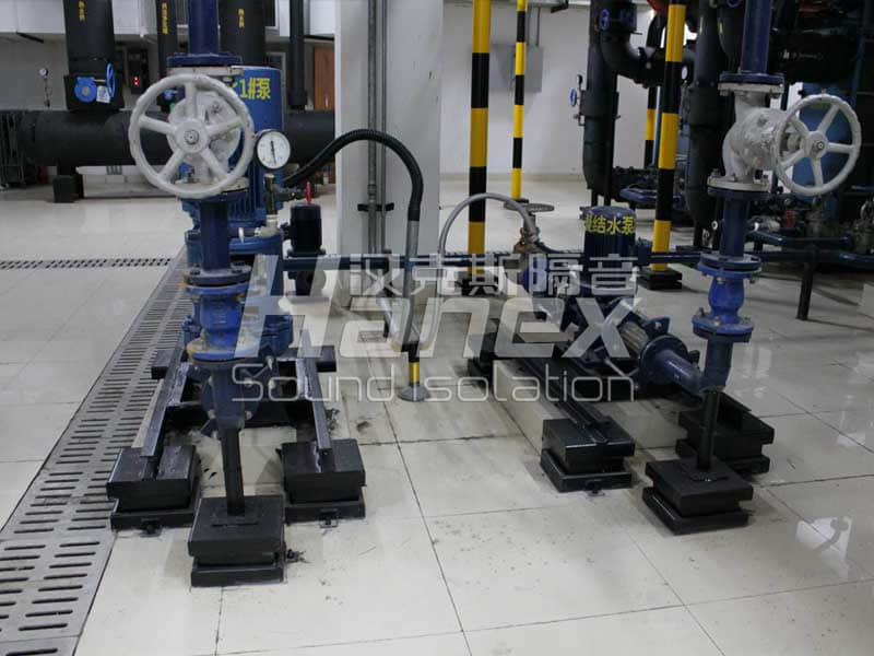 5、 從國內已有的案例與我們漢克斯隔音的實踐來看,地下室設備房內減振降噪,通常是通過支架全部落地,同時對支架與設備基礎進行減振來處理(如紹興人民醫院住院部的案例);