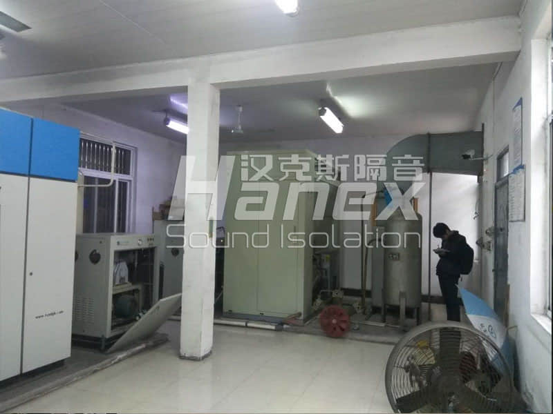 制氧機房內(nèi)制氧設(shè)備運行時,經(jīng)漢克斯隔音技術(shù)人員實測房內(nèi)噪聲數(shù)據(jù)值為90dB(A);制氧機房雙開門外噪聲數(shù)據(jù)值為66dB(A);制氧機房西側(cè)排風口噪聲數(shù)據(jù)值為80dB(A)。