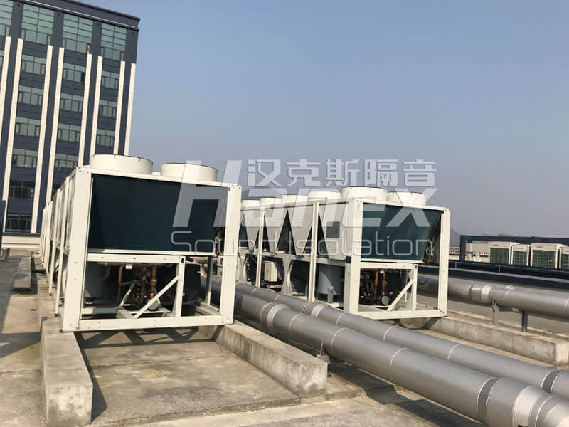 (2) 針對4臺風冷熱泵機組壓縮機噪聲大,對風冷熱泵機組壓縮機部件加裝隔聲罩。
