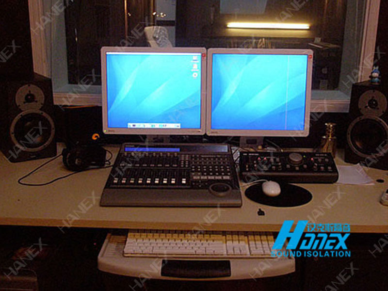 1.控制室與錄音室分隔降噪,中間分隔墻體隔聲同時安裝密封可視玻璃